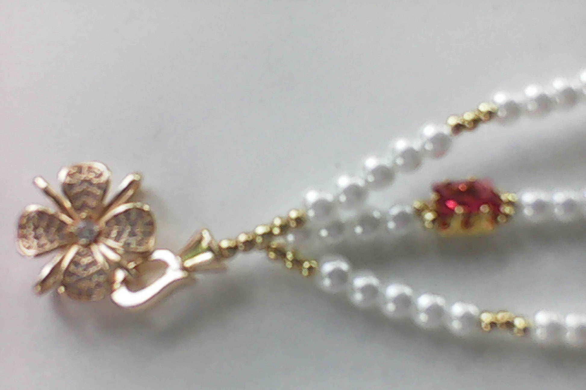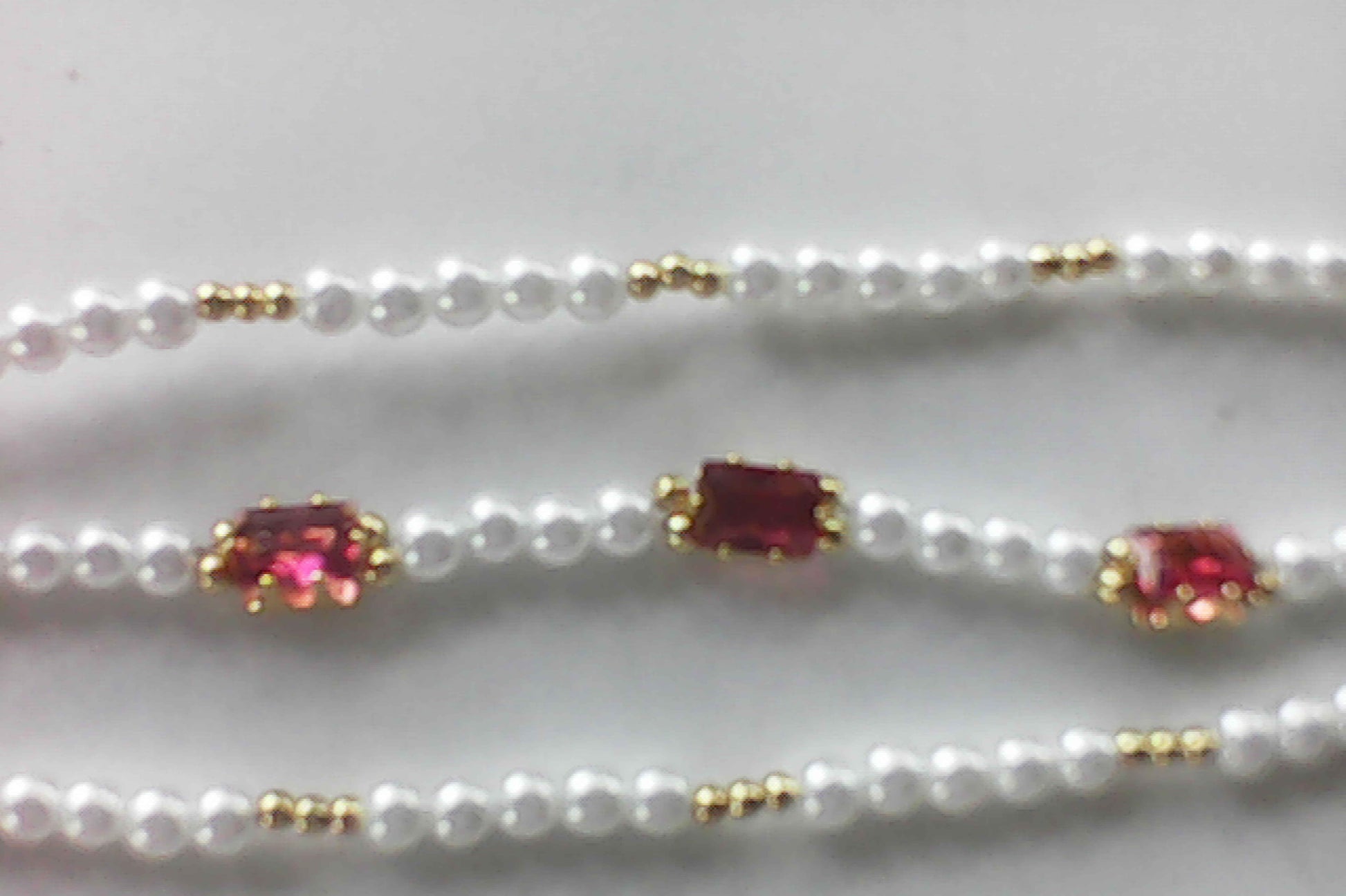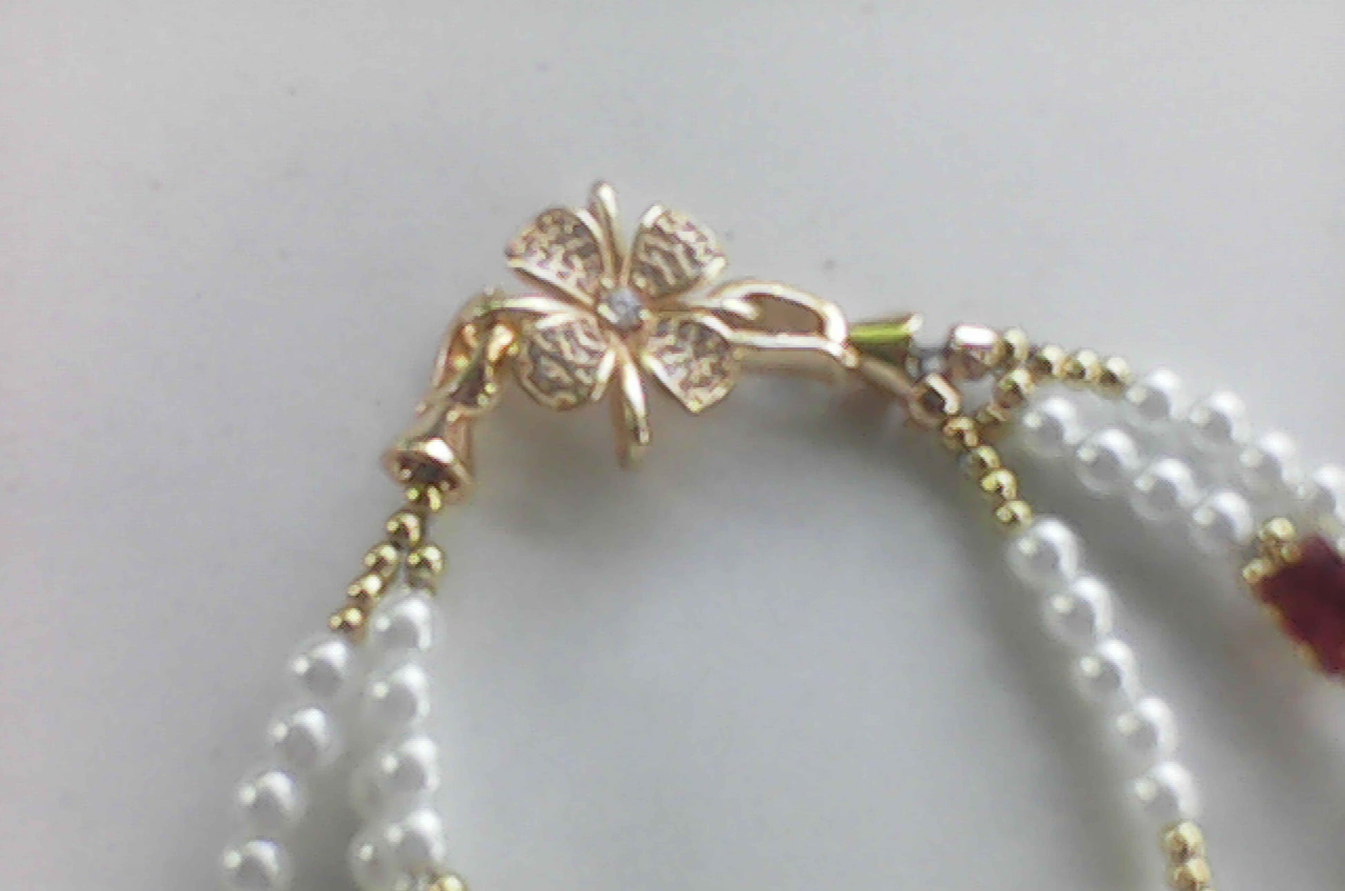 This sophisticated three-strand bracelet combines 5mm white pearl beads with gold accent beads and amber rectangle zircon beads for a balanced, elegant design. The simple flower closure offers a secure and refined finish, making it an expert choice for adding subtle luxury to your wristwear collection.