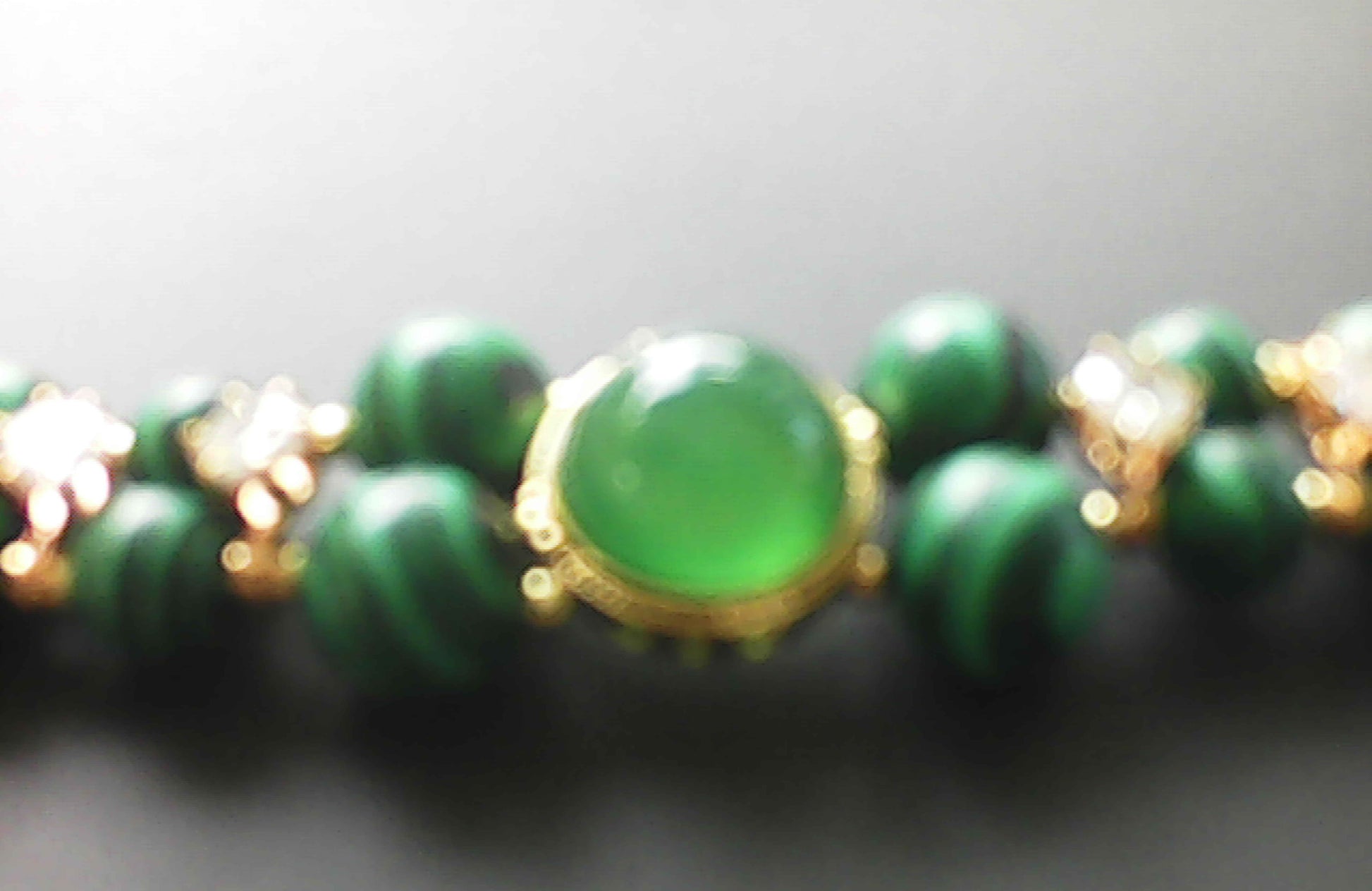 Crafted with expert precision, this bracelet features 6mm and 8mm green malachite beads, showcasing the stone’s natural, intricate markings. A 5mm green jade center spacer adds refined contrast, while the exquisite green closure ensures a secure and elegant finish. Ideal for those who appreciate the unique beauty and grounding qualities of natural stones.