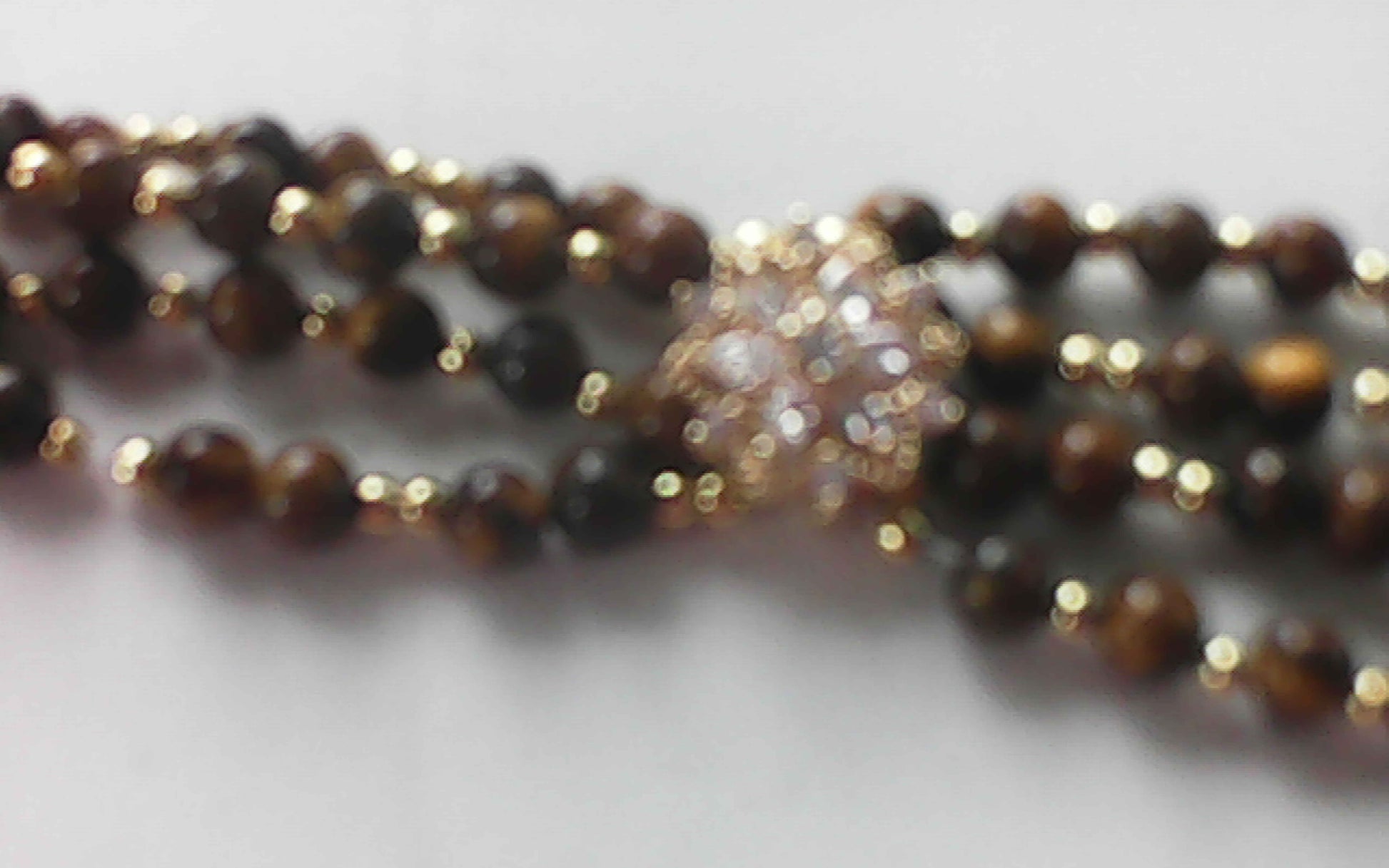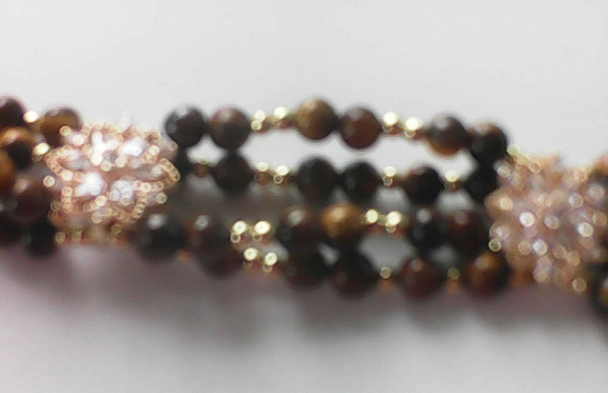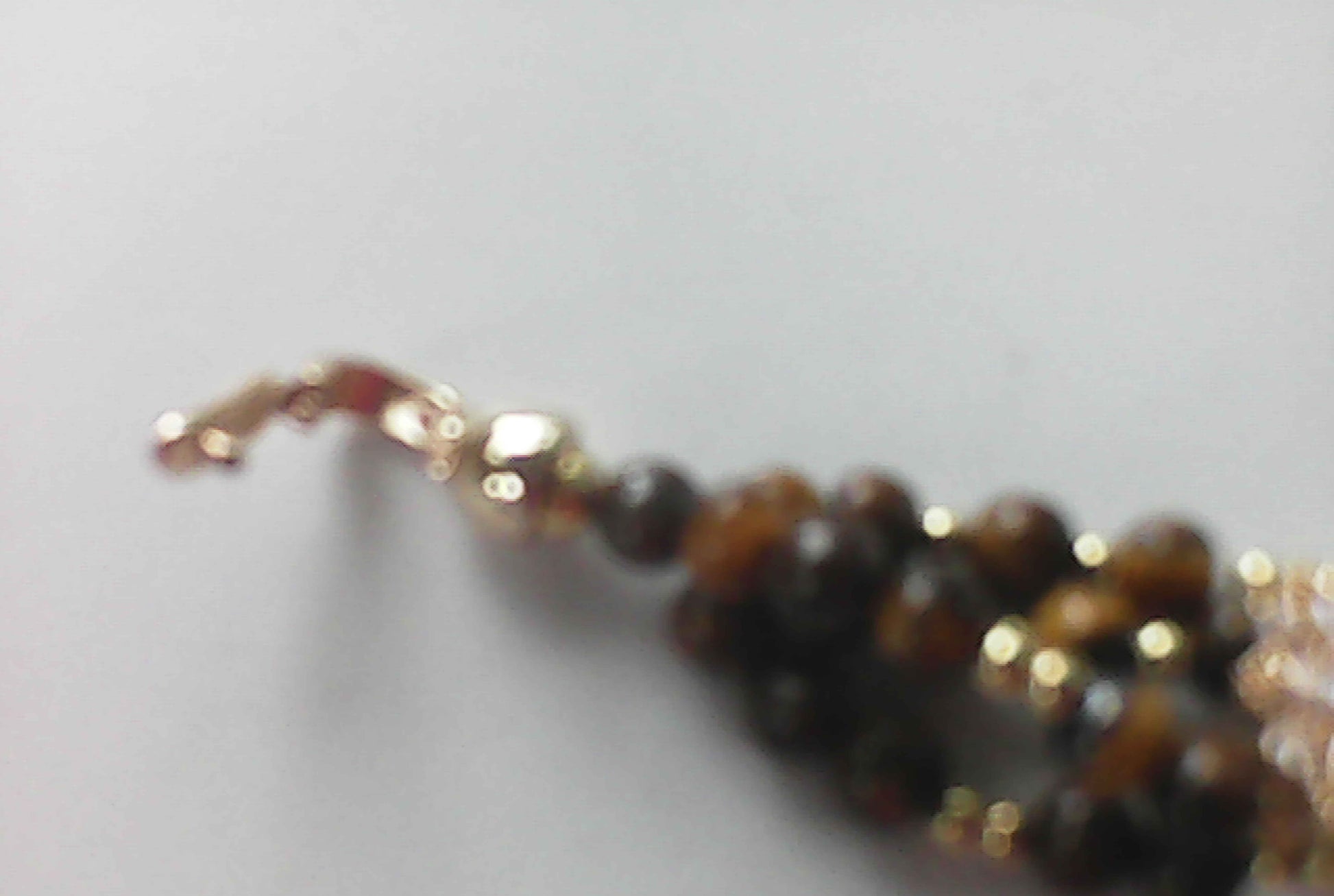Crafted with precision, the Skylar bracelet features four strands of 4mm brown and yellow tiger eye beads, complemented by elegant gold accent beads. Beautiful flower spacer beads and a matching closure add a refined touch, creating a timeless accessory that fits most wrists comfortably. This piece combines natural beauty with expert design, making it a versatile addition to any collection.